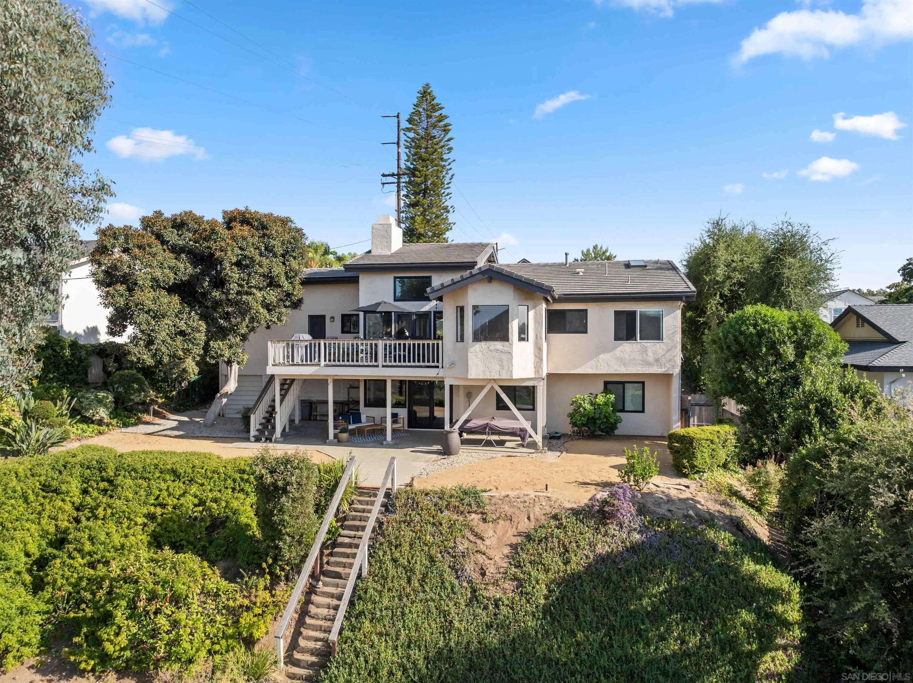 REDUCED. Buyer incentives available. Views Views Views! This home is sure to impress, with high end finishes and numerous upgrades throughout. Welcomed in by soaring 20+ foot vaulted ceilings and flooded with natural light, the floor-to-ceiling windows give way to an expansive dining deck and breathtaking sit down views from nearly every room. ENTRY LEVEL PRIMARY SUITE with a Roman-Spa inspired bathroom. A chef's dream kitchen with high-end appliances, tumbled quartz counters and hide-away cabinetry. Living rooms on both levels, formal and casual dining spaces, this property lends itself to effortless entertaining and functional family life. Countless upgrades including solar, new roof, remodeled bathrooms, low maintenance/water landscaping, new windows, 250+ square foot workshop and so much more. Sitting on over a quarter of an acre, the 2-tiered backyard is the perfect escape to take in the forever views. Award winning Poway schools, close proximity to shopping and dining. Come experience perfection in this North Poway stunner.