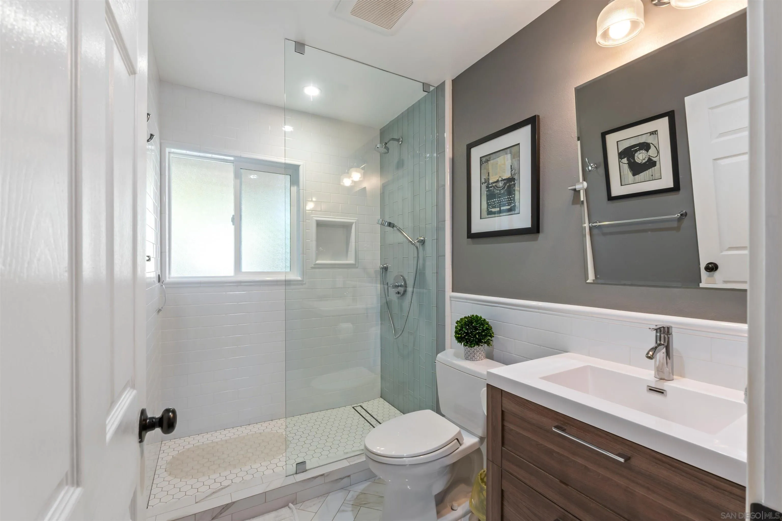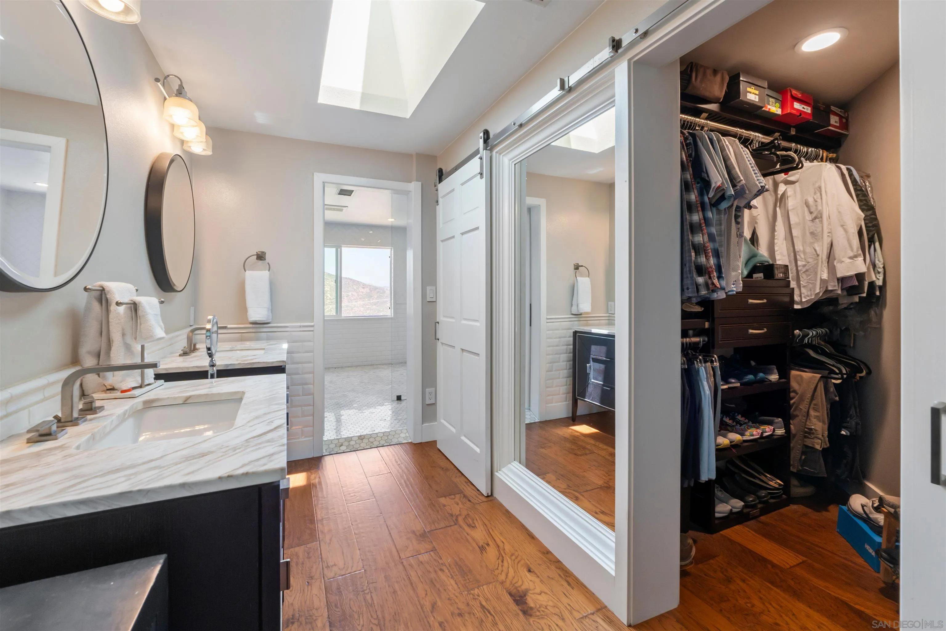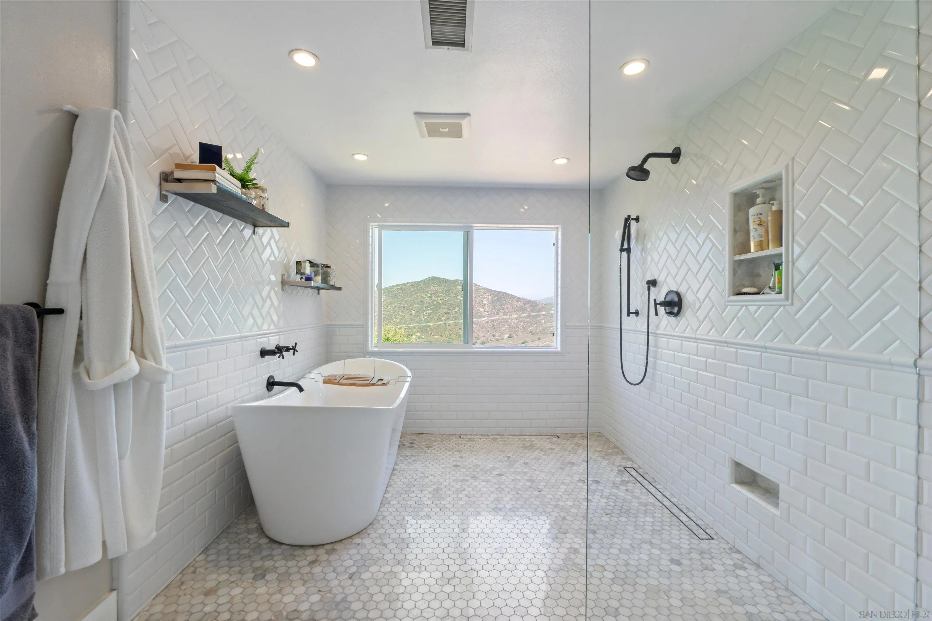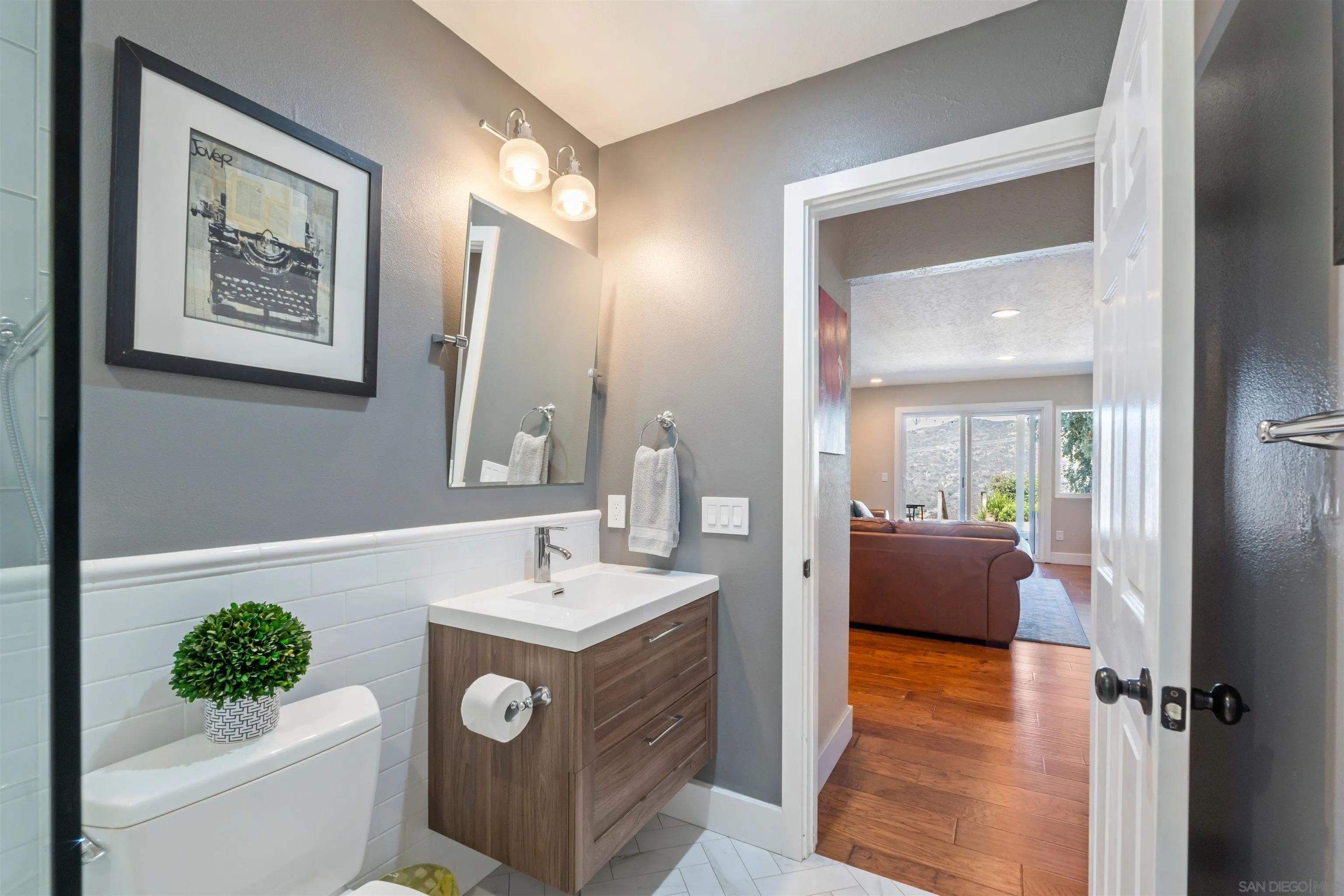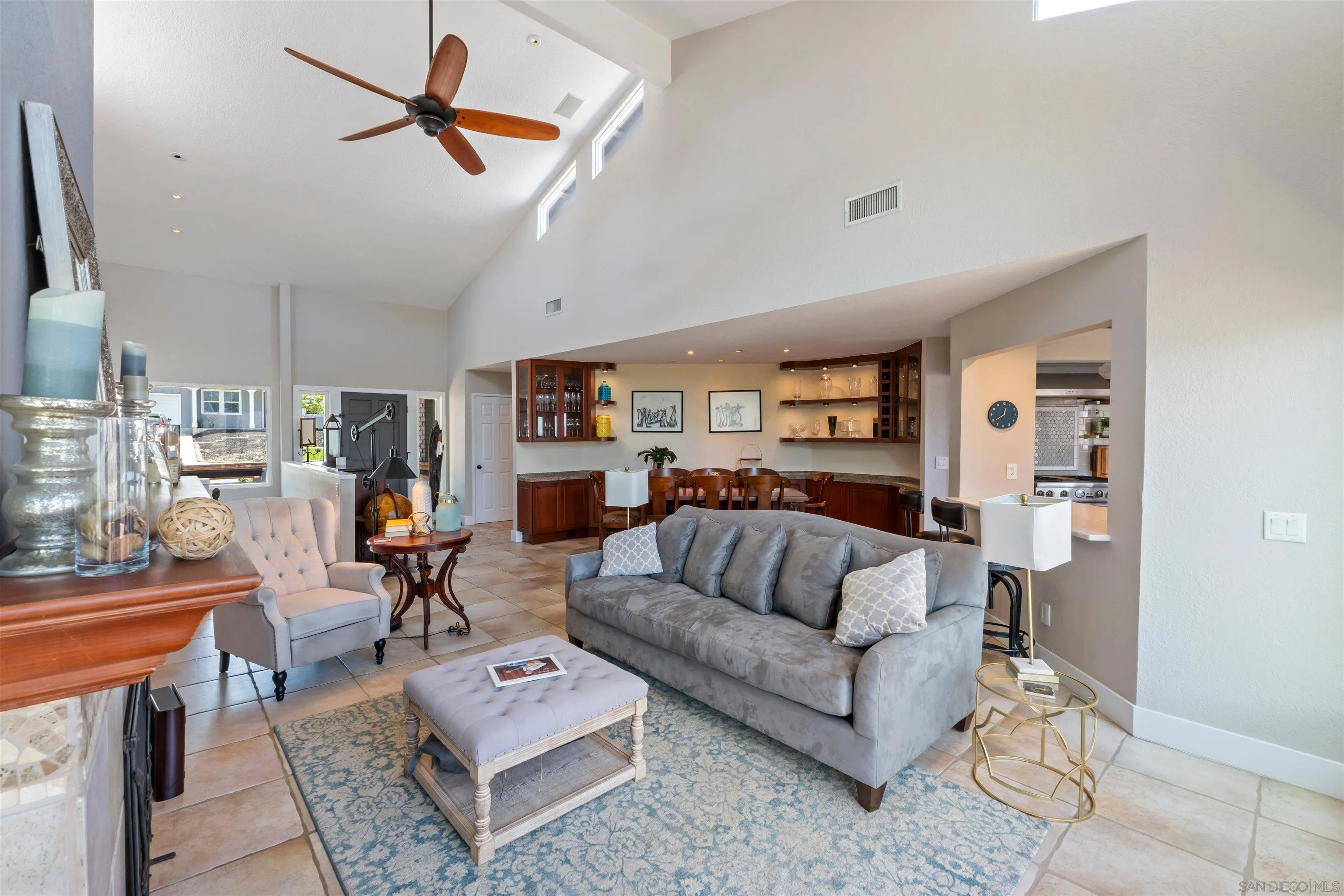 HUGE Price Reduction! Views Views Views! This home is sure to impress, with high end finishes and numerous upgrades throughout. Welcomed in by soaring 20+ foot vaulted ceilings and flooded with natural light, the floor-to-ceiling windows give way to an expansive dining deck and breathtaking sit down views from nearly every room. ENTRY LEVEL PRIMARY SUITE with a Roman-Spa inspired bathroom. A chef's dream kitchen with high-end appliances, tumbled quartz counters and hide-away cabinetry. Living rooms on both levels, formal and casual dining spaces, this property lends itself to effortless entertaining and functional family life. Countless upgrades including solar, new roof, remodeled bathrooms, low maintenance/water landscaping, new windows, 250+ square foot workshop and so much more. Sitting on over a quarter of an acre, the 2-tiered backyard is the perfect escape to take in the forever views. Award winning Poway schools, close proximity to shopping and dining. Come experience perfection in this North Poway stunner.