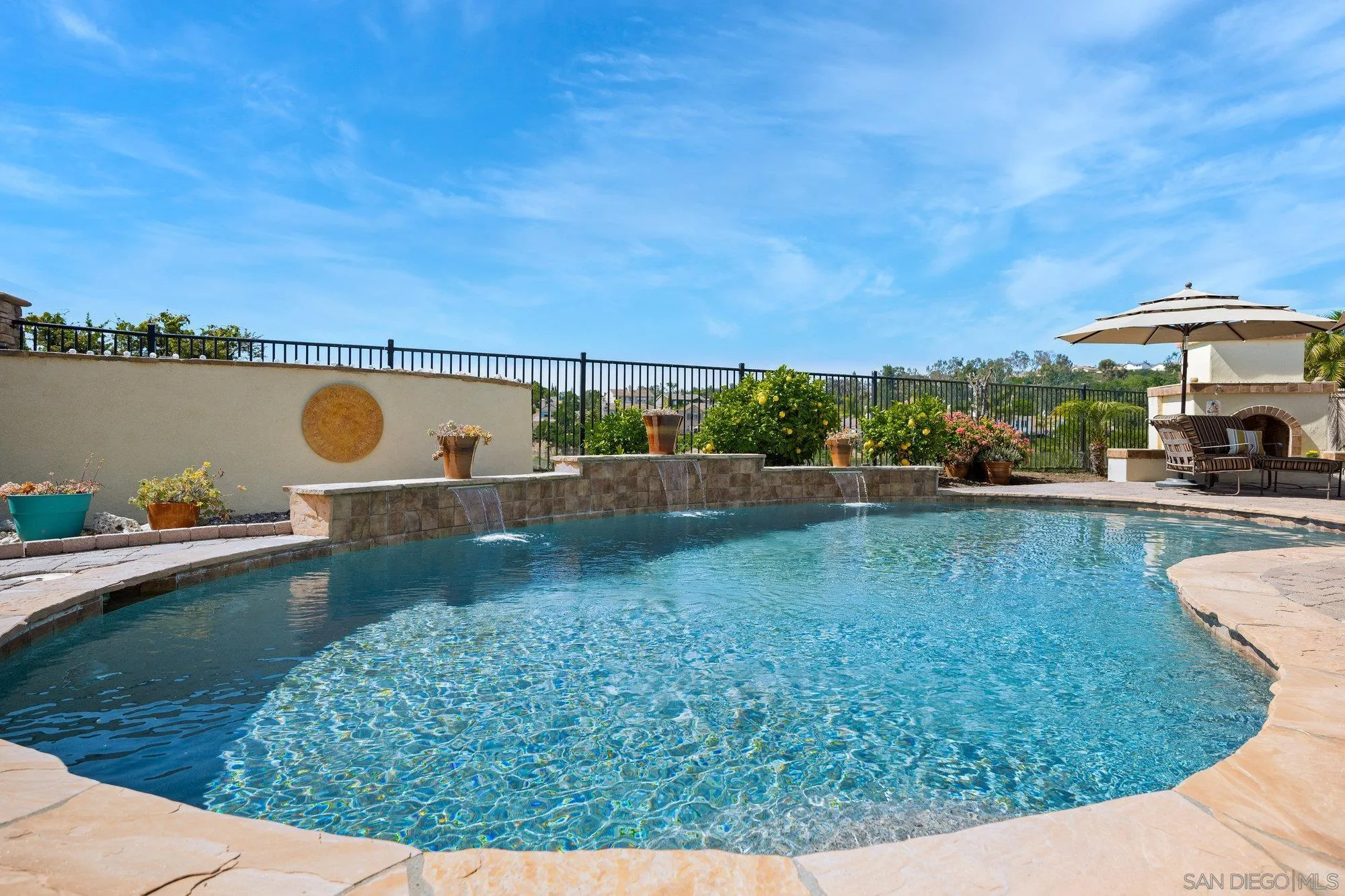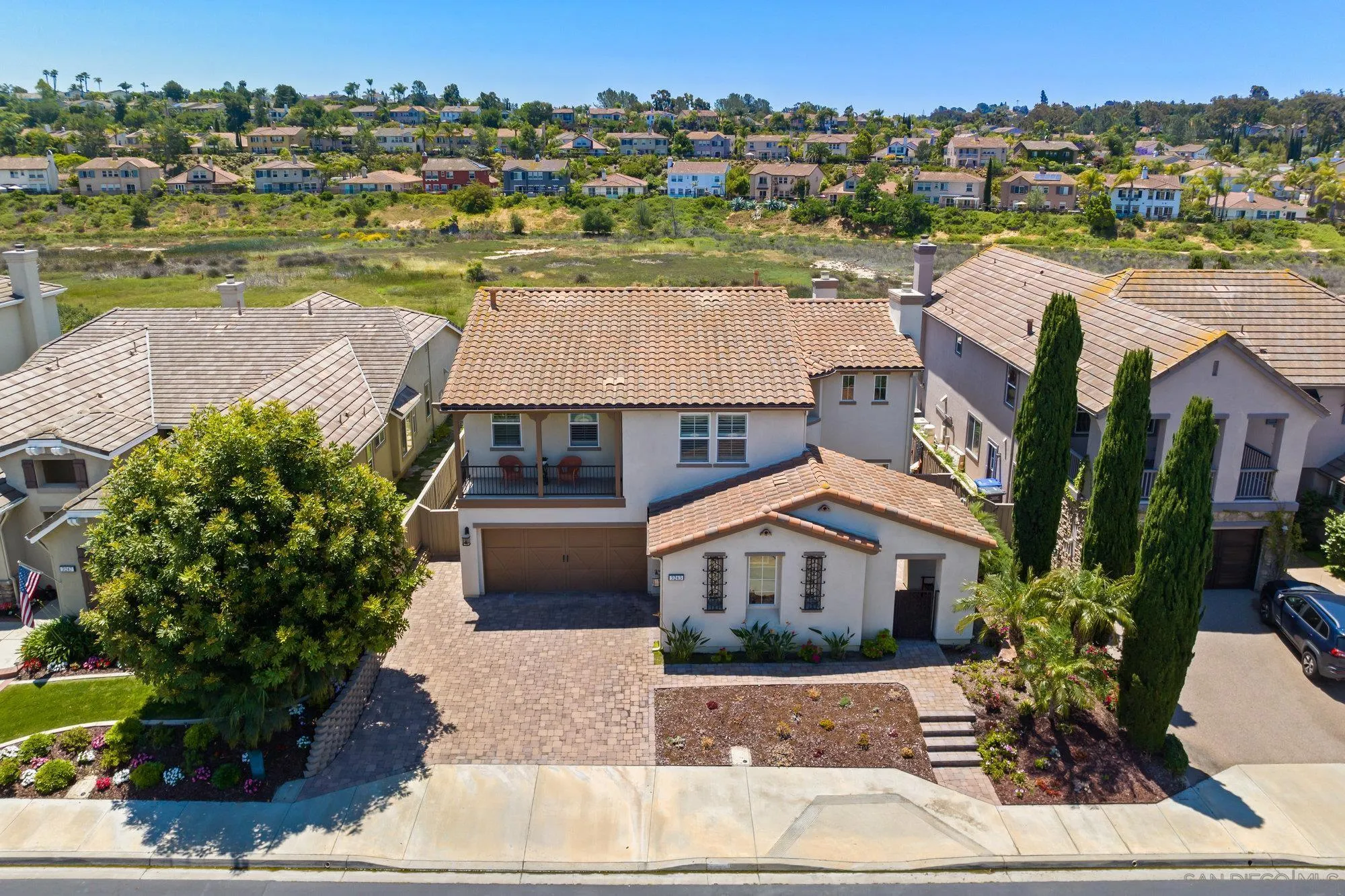 Buyer incentives available. This light-filled residence spans 3,377 sqft with 5 bedroom options, 1ST FLOOR PRIMARY BEDROOM, 3.5 baths, and PRIVATE POOL. Inside, soaring ceilings set the tone, and the gourmet kitchen dazzles with an impressive island of matte-finished, tumbled stone, Wolf range, SubZero fridge, and massive pantry. Upstairs, discover generous en-suite bedrooms, expansive bonus room and private balcony. Effortless outdoor enjoyment with its solar-heated pool and outdoor fireplace, framed by lush landscaping, all backing onto a serene nature preserve. NO NEIGHBORS BEHIND. Just minutes from Encinitas & Carlsbad beaches, vibrant downtown, dining, top schools, endless outdoor attractions and activities. A home that blends luxury, comfort, and convenience.